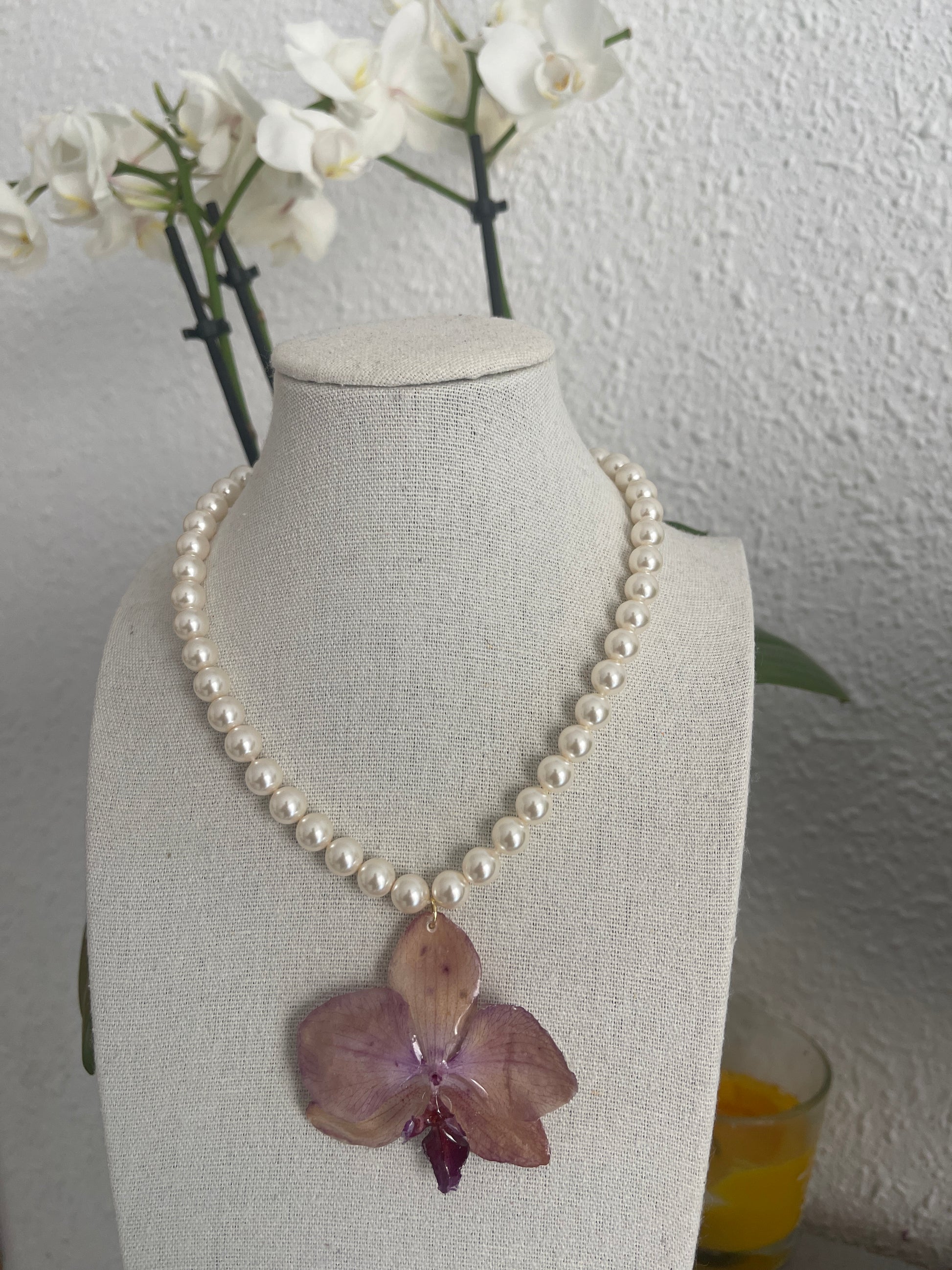 Collar de orquídeas (FLOR NATURAL) y perlas blancas