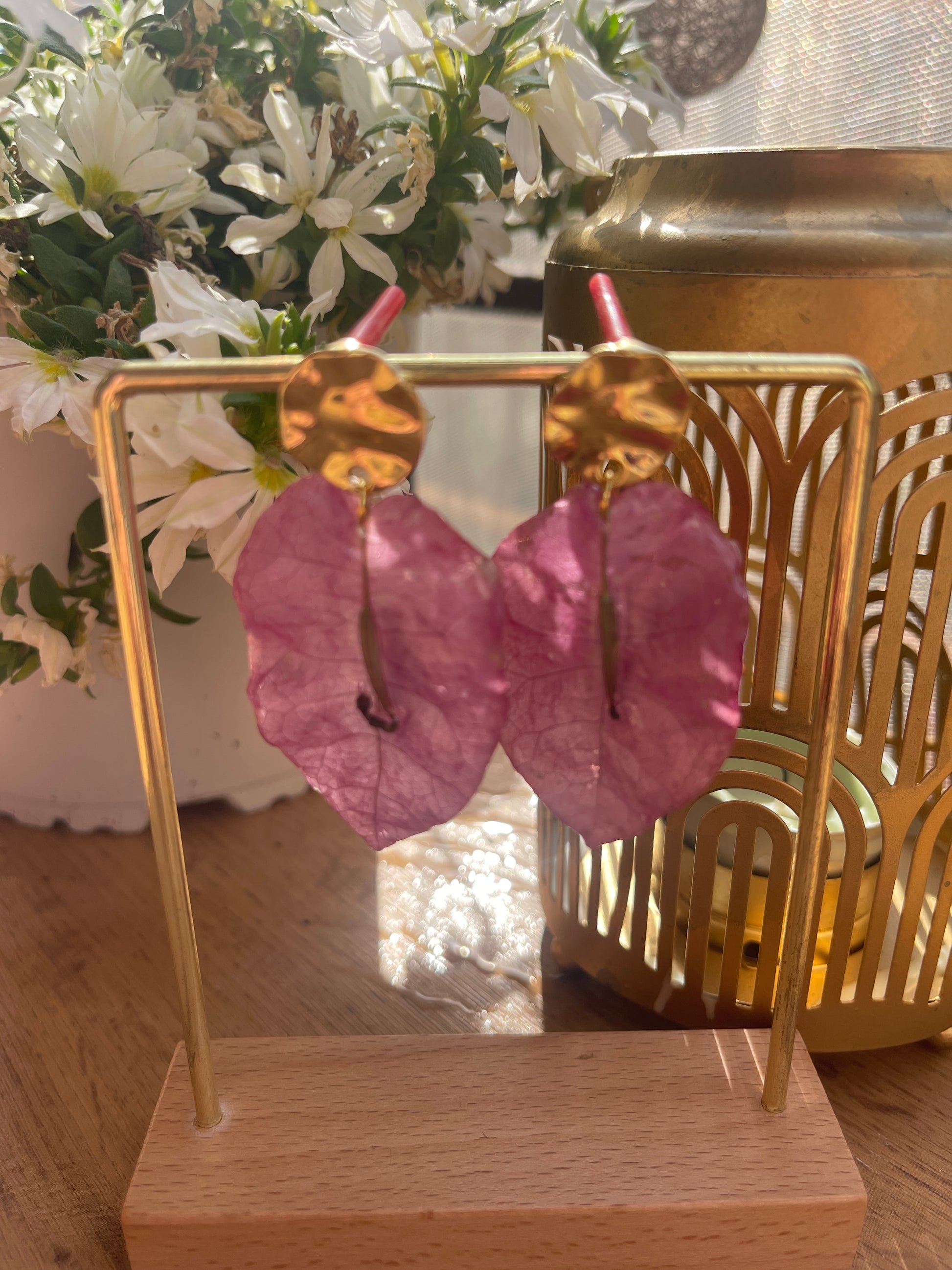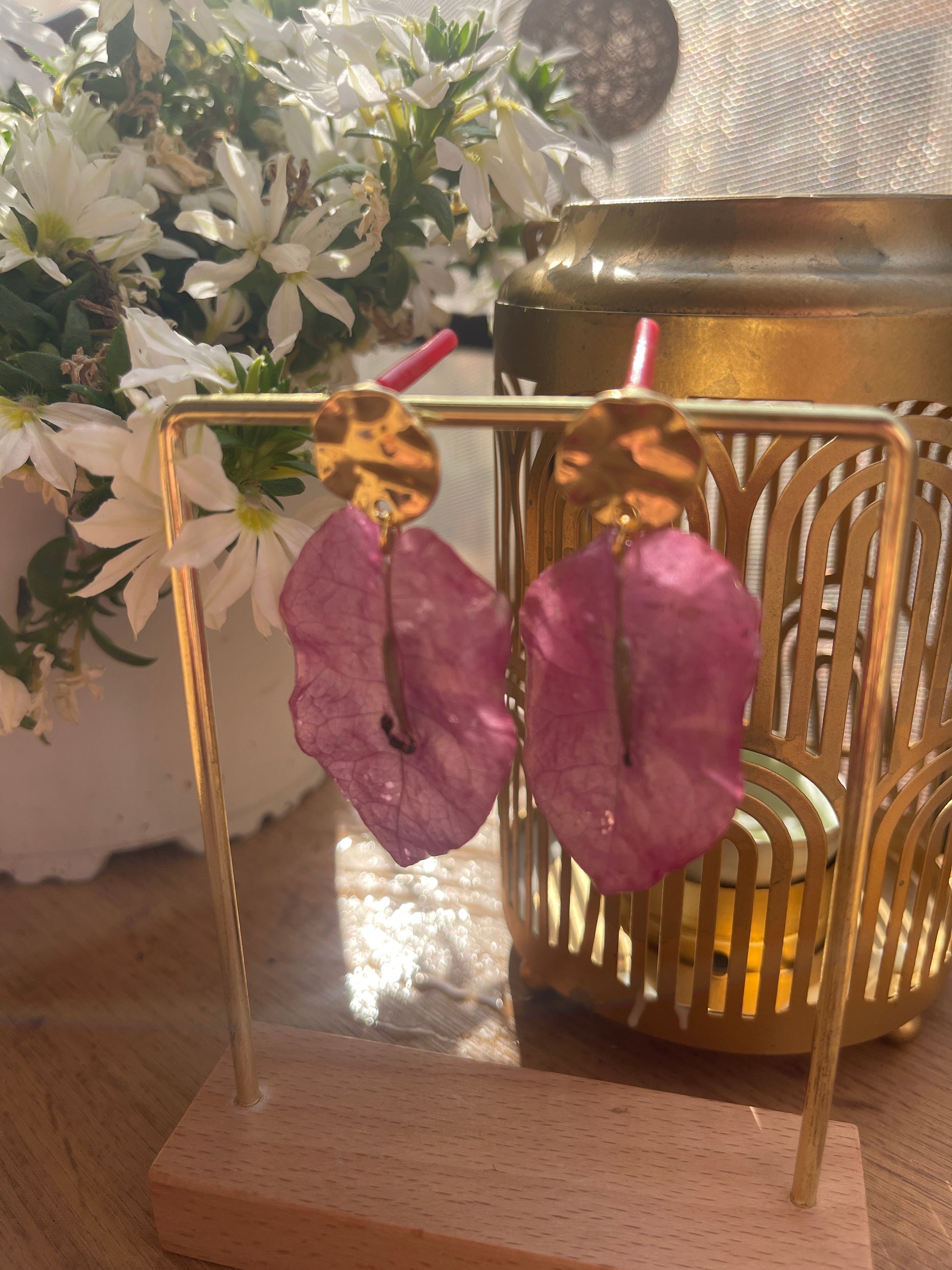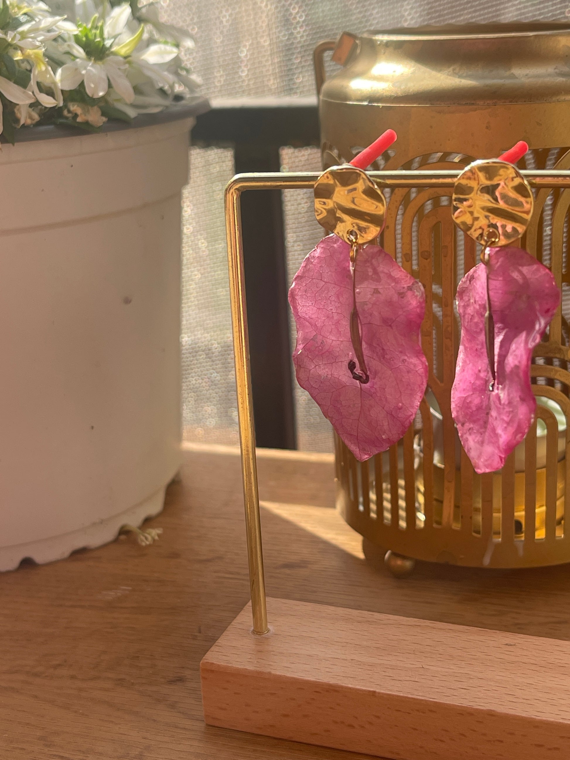Pendientes de pétalos de flor natural preservados en resina