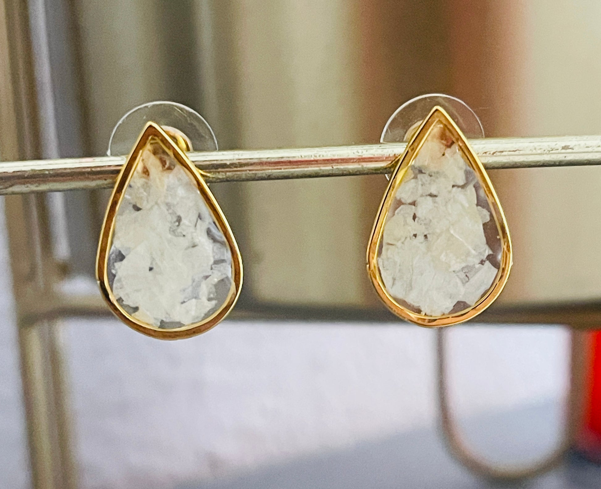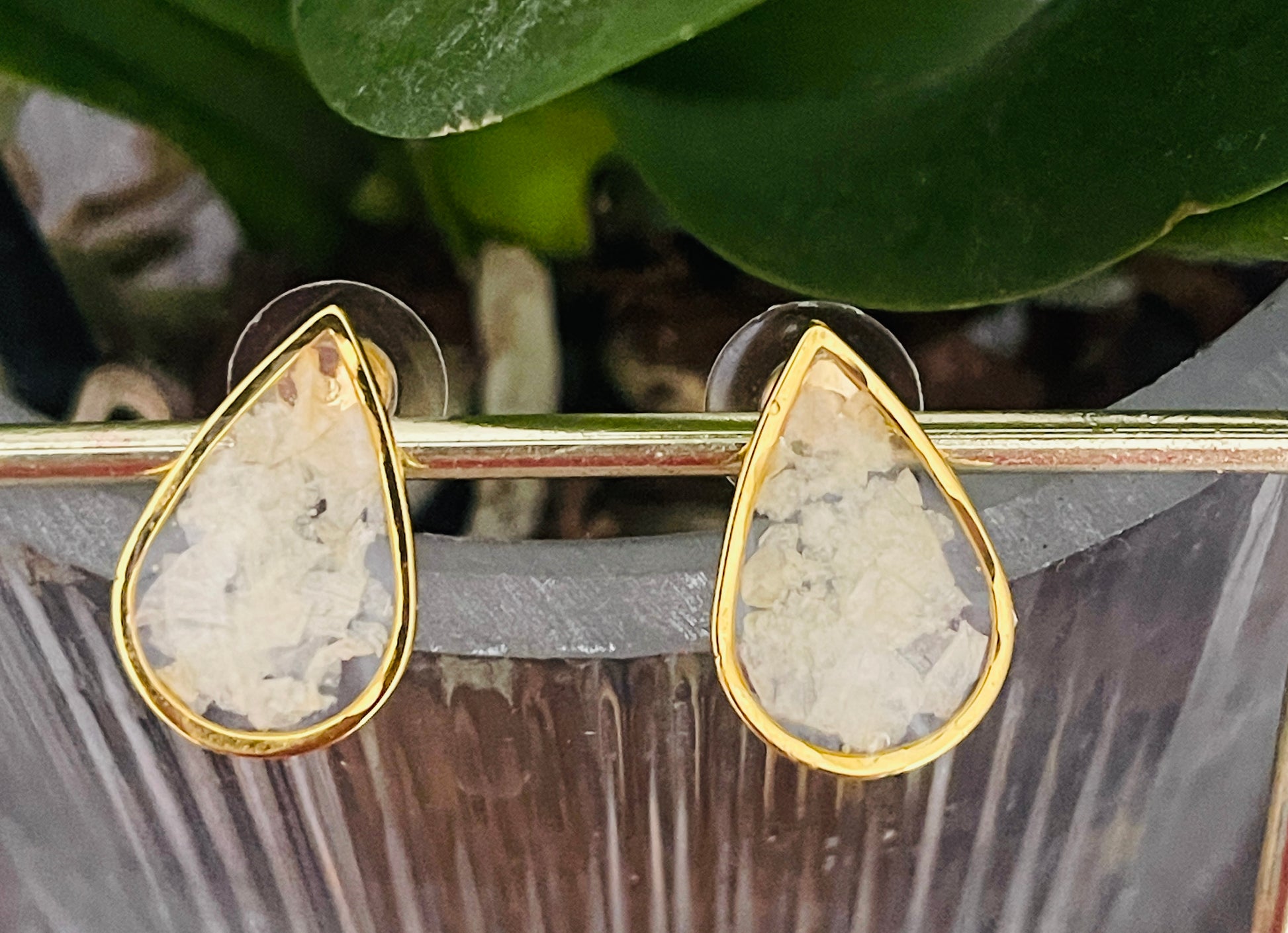 Pendientes Gota resina y pétalos de orquídea blancos
